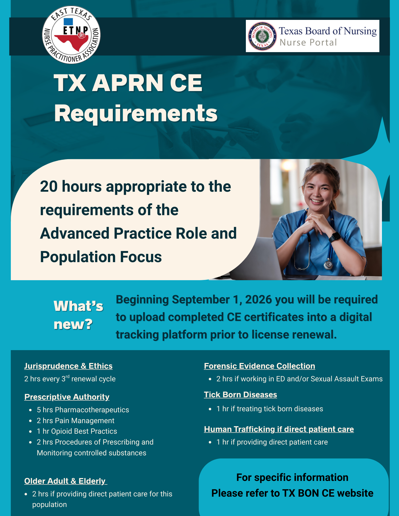 As promised, here's a snapshot of the new CE requirement for TX APRN